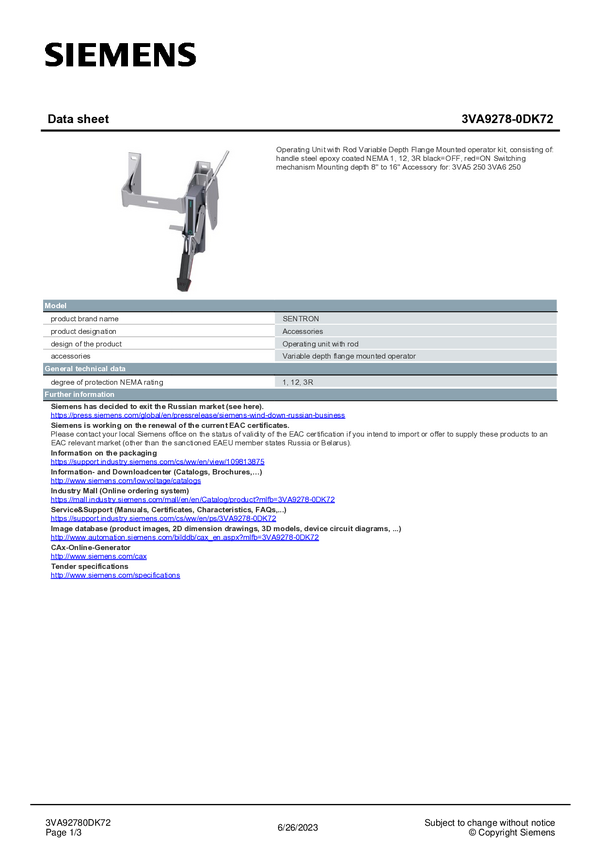 Jednostka operacyjna Siemens 3VA9278-0DK72 1 szt.