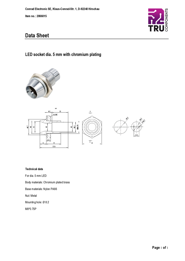 Oprawka LED TRU COMPONENTS TC-11464060 metal, nylon PA 6.6 Odpowiedni do LED 5 mm mocowanie śrubowe