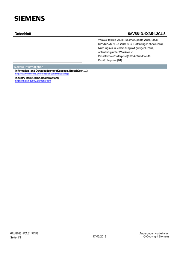 Oprogramowanie PLC Siemens 6AV6613-1XA51-3CU8 6AV66131XA513CU8