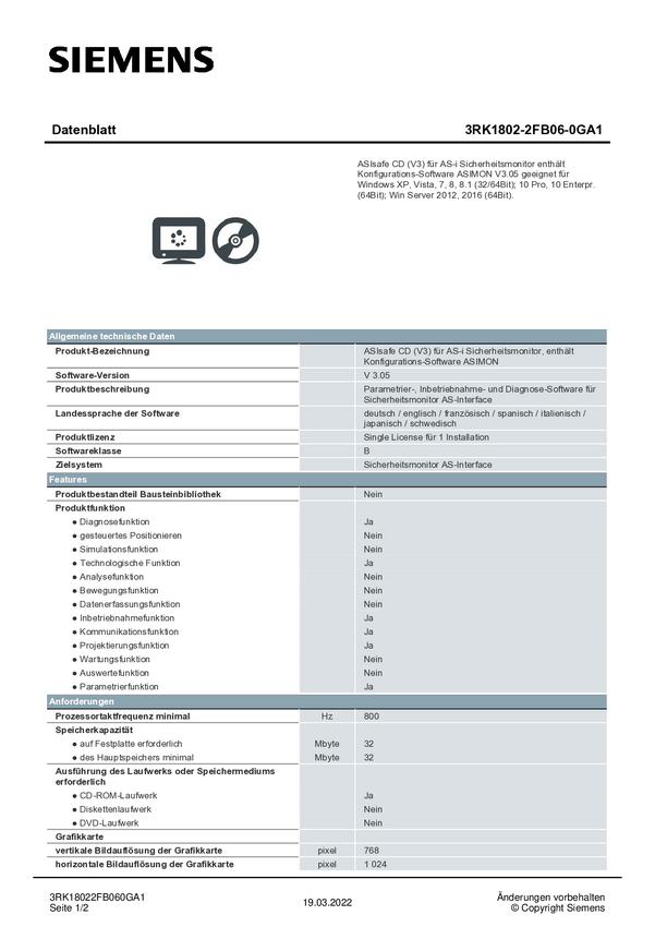Oprogramowanie PLC Siemens 3RK1802-2FB06-0GA1 3RK18022FB060GA1