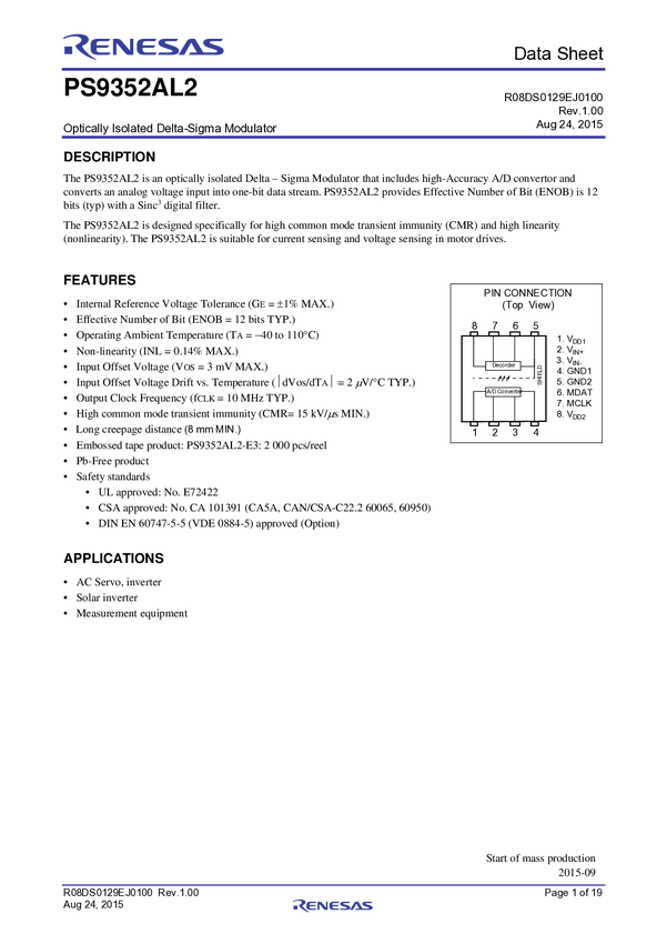 20MHz Internal Clock Optically Isolated Delta-Sigma Modulator (Manchester Code Output)