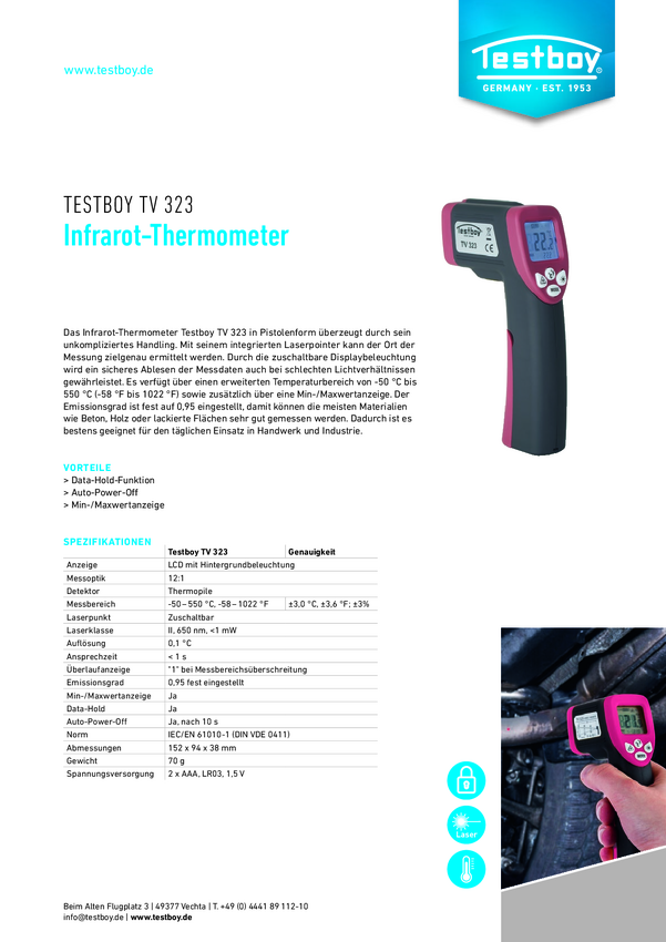 Testboy TV 323 Pirometr Optyka 12:1 -50 - +550 °C