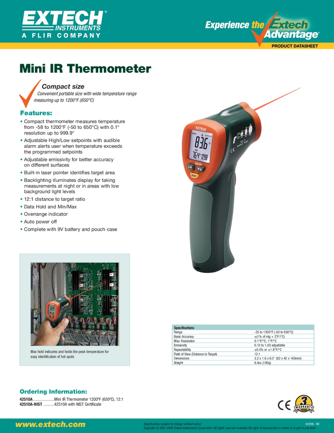 Extech 42510A Mini termometr na podczerwień Optyka 12:1 -50 - +650 °C