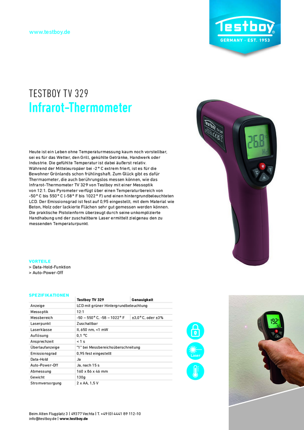 Testboy TV 329 Pirometr Optyka 12:1 -50 - +550 °C