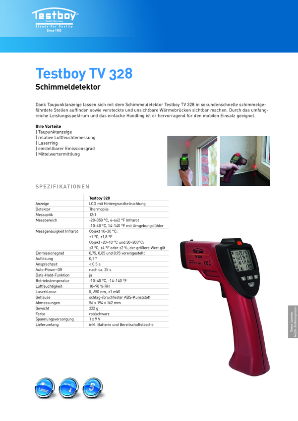 Testboy TV 328 Pirometr Optyka 12:1 -20 - +350 °C