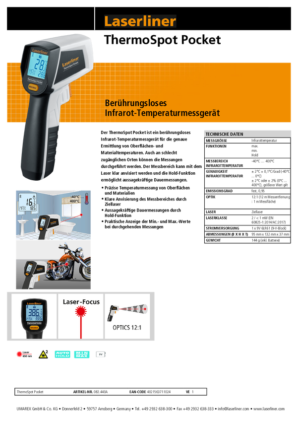 Laserliner ThermoSpot Pocket Pirometr Optyka 12:1 -40 - 400 °C