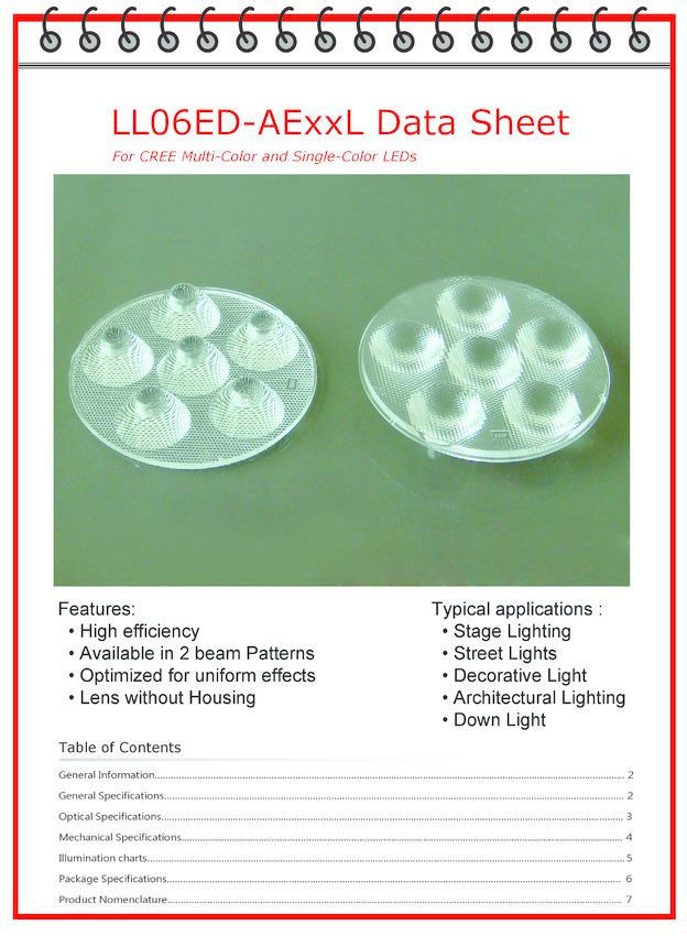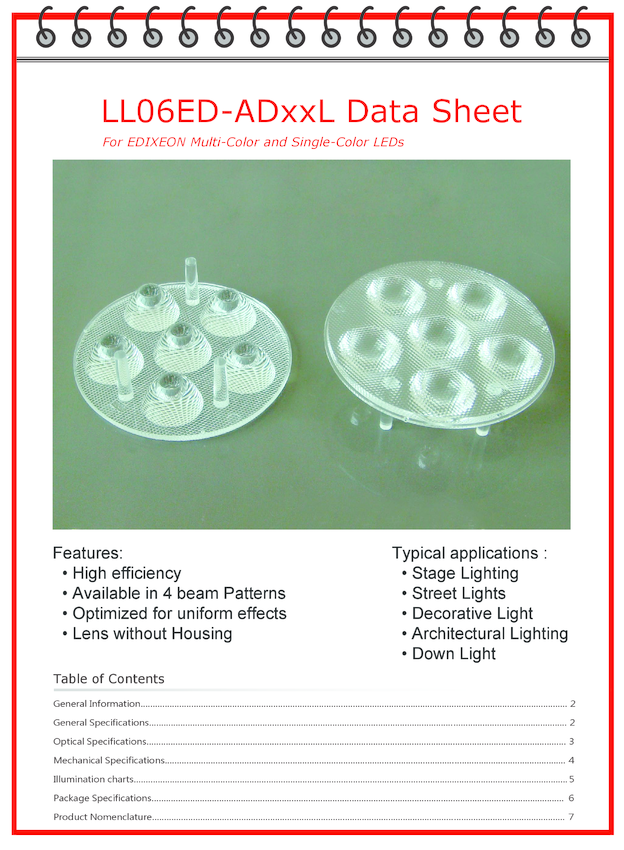Soczewka LL06ED-AE25L, , do 6 x diod LED High Power CREE seria MX6 (także do serii XP oraz XR), LedLink