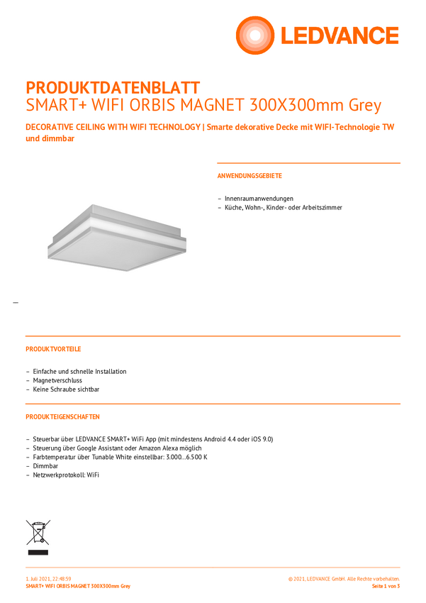 Lampa sufitowa LED LEDVANCE Smart + Wifi Orbis Magnet 300x300 4058075572799 26 W 2500 lm szary