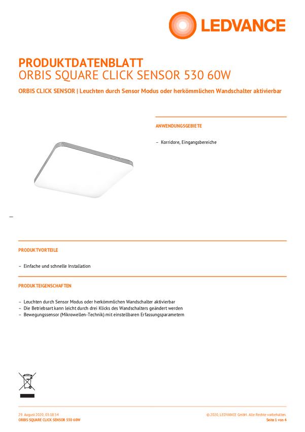 Lampa sufitowa LED z czujnikiem ruchu LEDVANCE Orbis 4058075472839 60 W 4450 lm biały
