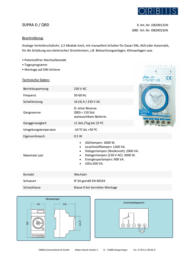 ORBIS Zeitschalttechnik OB290132N Przekaźnik czasowy na szynę DIN SUPRA D 230 V, analogowy, 1 x WŁ/WYŁ