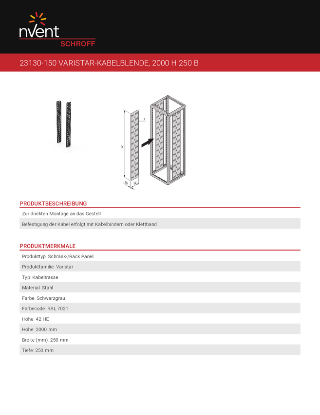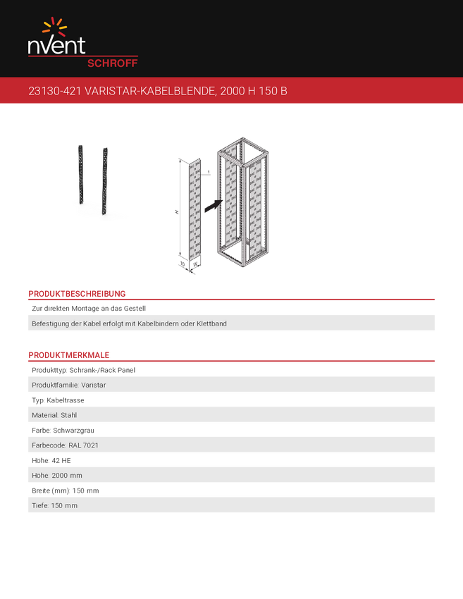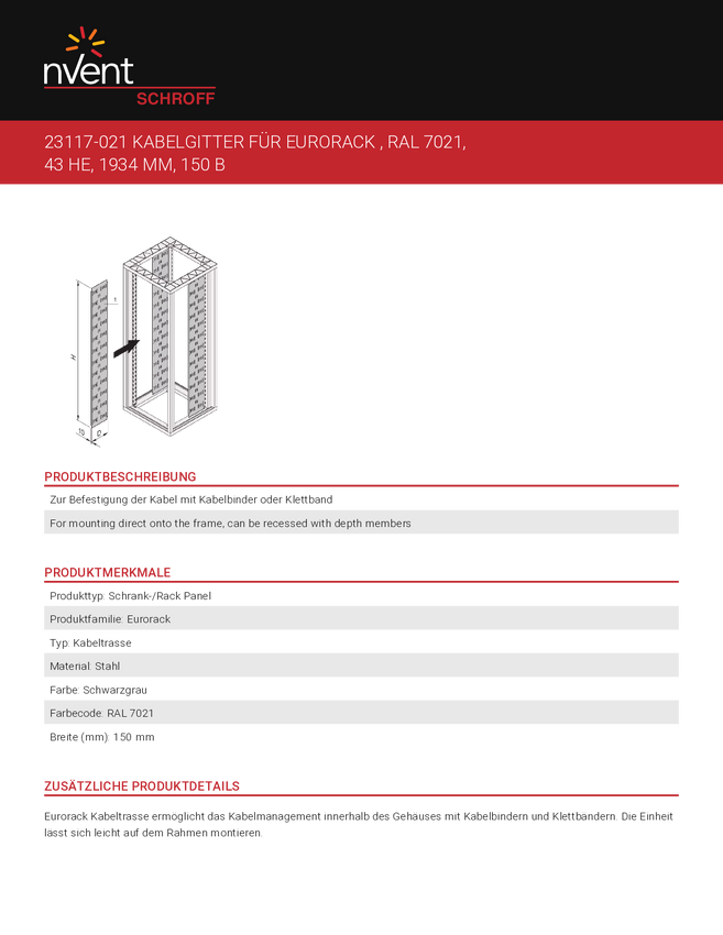 nVent SCHROFF 23117021 Organizer do kabli (S x W) 150 mm x 1934 mm 1 szt.