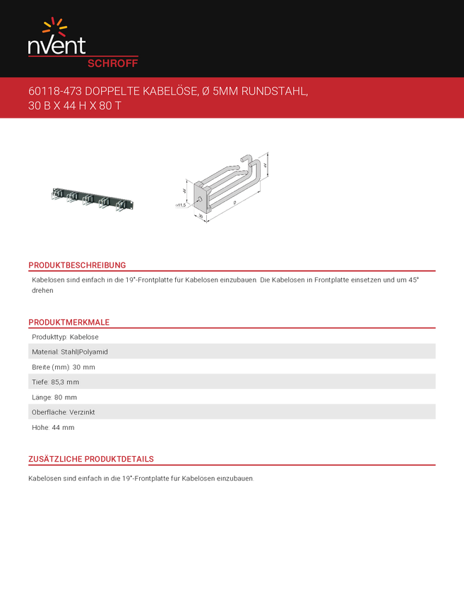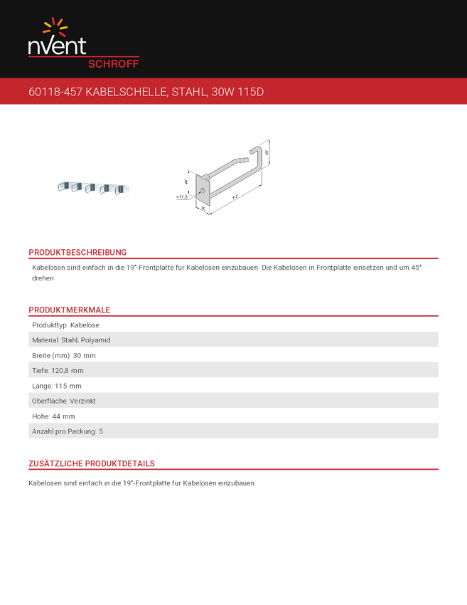 nVent SCHROFF 60118473 Organizer do kabli (S x W x G) 80 x 44 x 30 mm 5 szt.