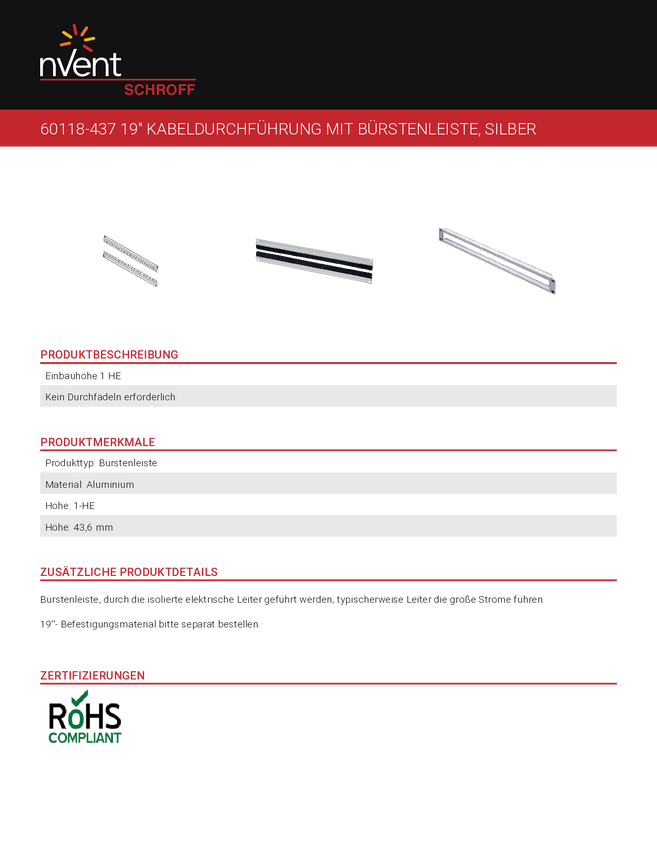 nVent SCHROFF 20118796 Organizer do kabli 1 szt.
