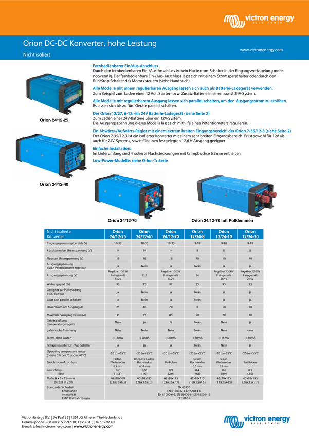 Przetwornica samochodowa Victron Energy ORI241270030 Orion 24/12-70 Polklemmen