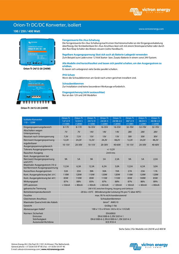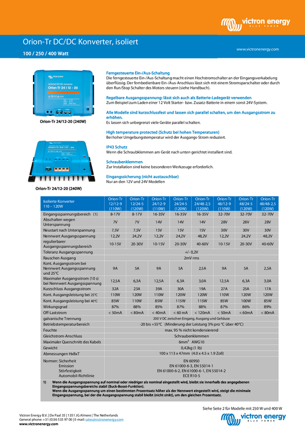 Victron Energy Orion-Tr 24/48-2,5A (120W) Isolated DC-DC converter Przetwornica DC/DC - 40 V, 60 V/3 A 120 W