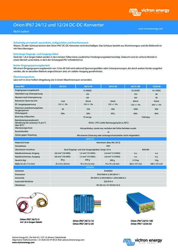 Przetwornica samochodowa Victron Energy ORI241205260 Orion IP67 24/12-5 60 W