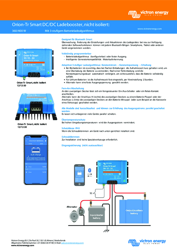 Przetwornica samochodowa Victron Energy ORI241236140 Orion-Tr Smart 24/12-30 360 W