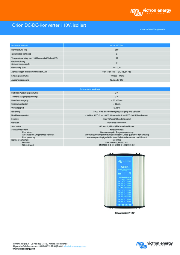 Victron Energy Orion 110/24-15A Przetwornica DC/DC 110 V - 12.5 V, 24 V/15 A 360 W