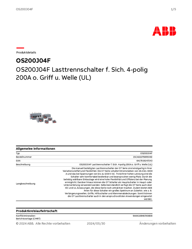 ABB OS200J04FP Rozłącznik 200 A 1 szt.