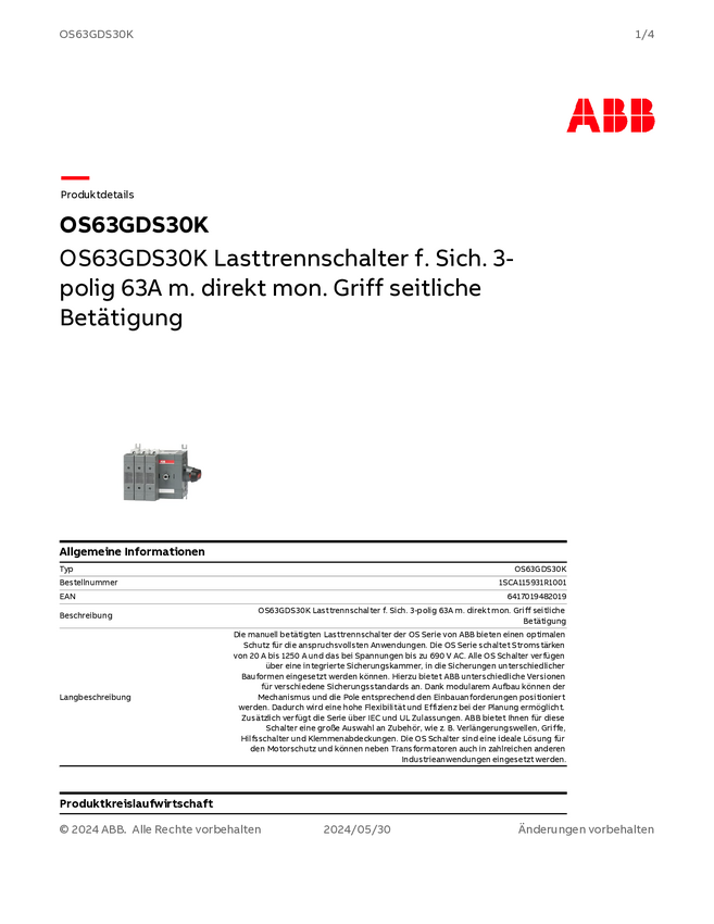 ABB OS63GD04N2K Rozłącznik 63 A 1 szt.