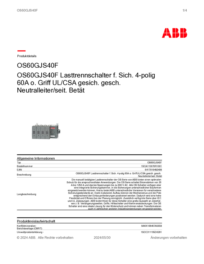 ABB OS60GJ04FP Rozłącznik 63 A 1 szt.