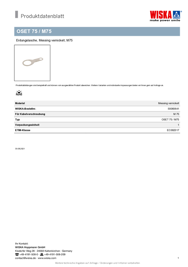 Wiska 50065641 OSET 75, M75, 1 szt.