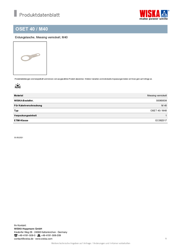 Wiska 50065638 OSET 40, M40, 1 szt.