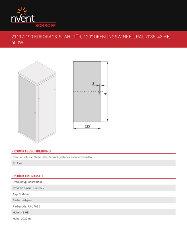 Drzwi stalowe SCHROFF, kąt otwarcia 120° - DRZWI BLACHA STALOWA 43U 553B