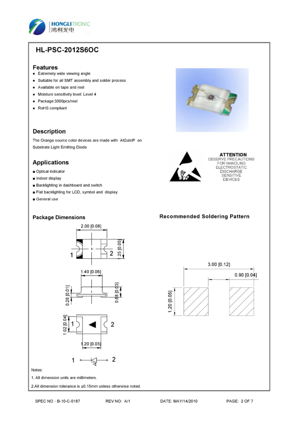 Dioda LED, SMD 0805, 600-610 nm, super-jasna 120-270 mCd /20mA, water clear, 1,8-2,4V 120 stopni, Honglitronic