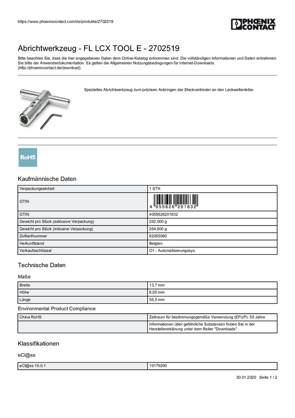 Akcesoria montażowe PLC Phoenix Contact FL LCX TOOL E 2702519, 1 szt.