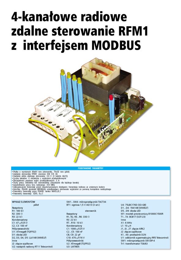 AVT5143 A 4-kanałowe radiowe zdalne sterowanie RFM1 z interfejsem MODBUS - płytki drukowane