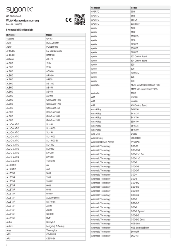 Radiowe sterowanie drzwiami garażowymi Sygonix SY-4887416 1 szt.