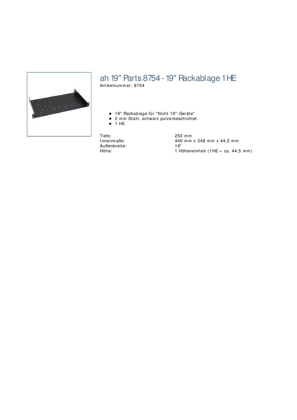 Półka pod sprzęt z otworami montażowymi 19", 1 U