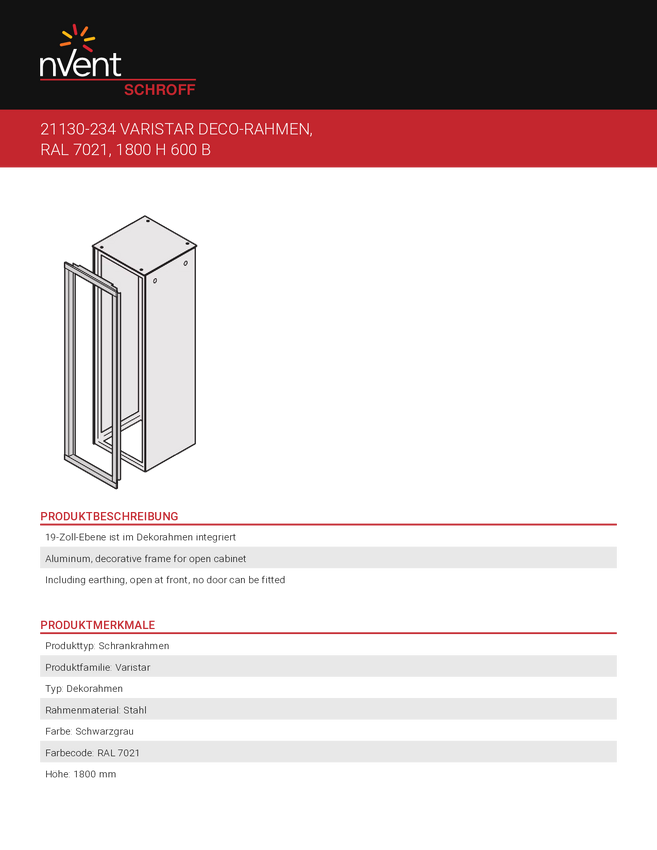 nVent SCHROFF 21130236 Ramka ozdobna (S x W) 600 mm x 2200 mm 1 szt.