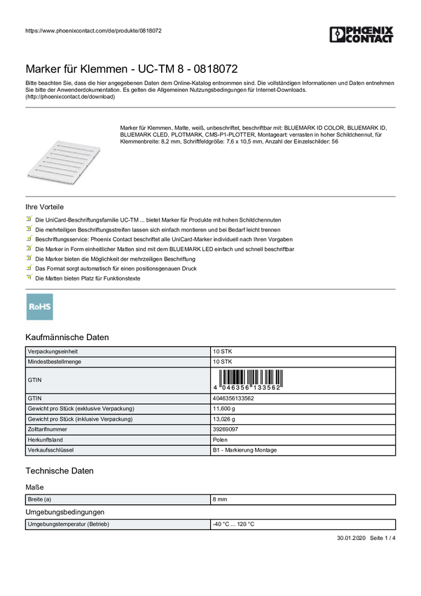 Oznaczenie zacisków Phoenix Contact UC-TM 8 0818072, 10 szt.