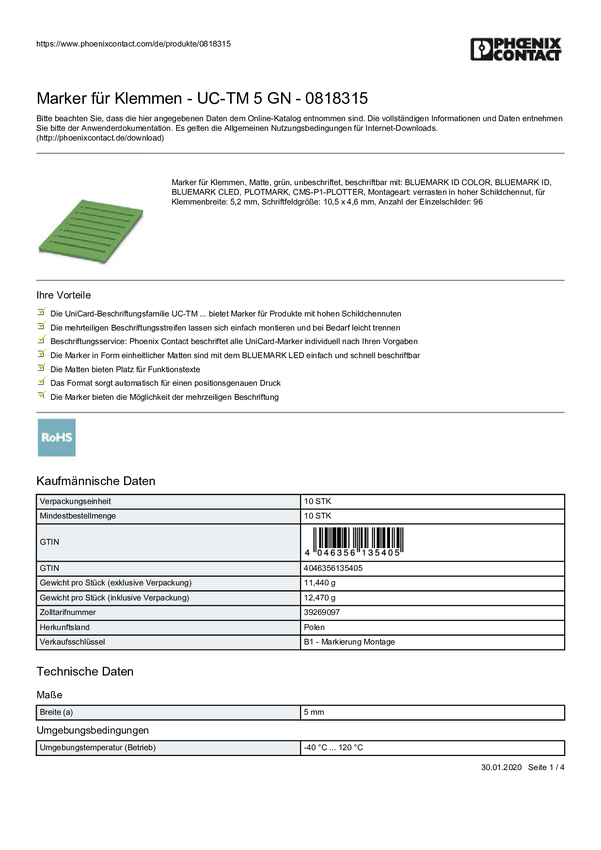 Phoenix Contact 0818315 Oznaczenie zacisków zielony 10 szt.