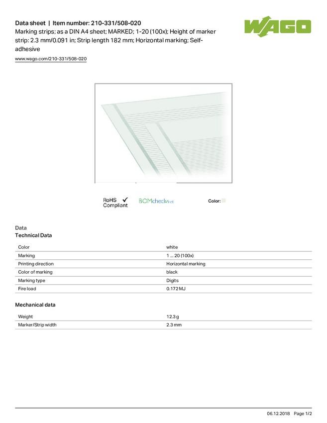 WAGO 210-331/508-020 samoprzylepny pasek oznacznikowy