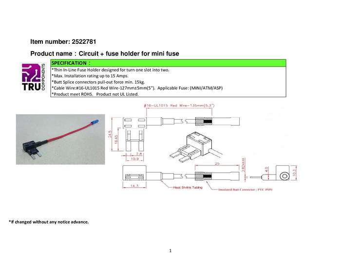 Adapter bezpiecznika płaskiego mini TRU COMPONENTS TC-10091124 15 A 1.5 mm² 1 szt.