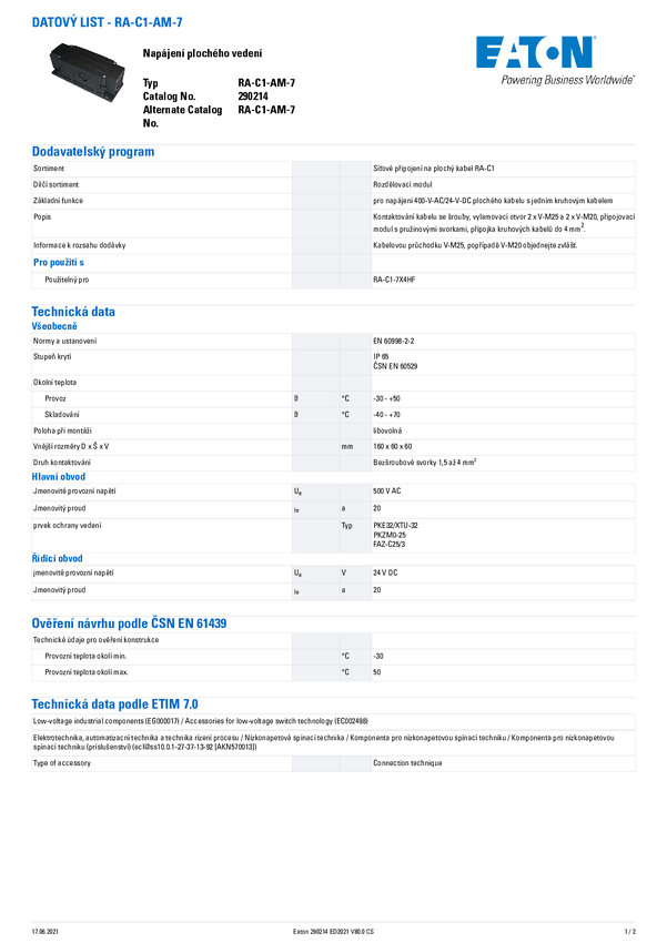 Wlot kabla płaskiego Eaton RA-C1-AM-7 1 szt.