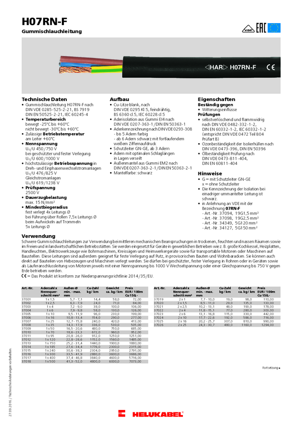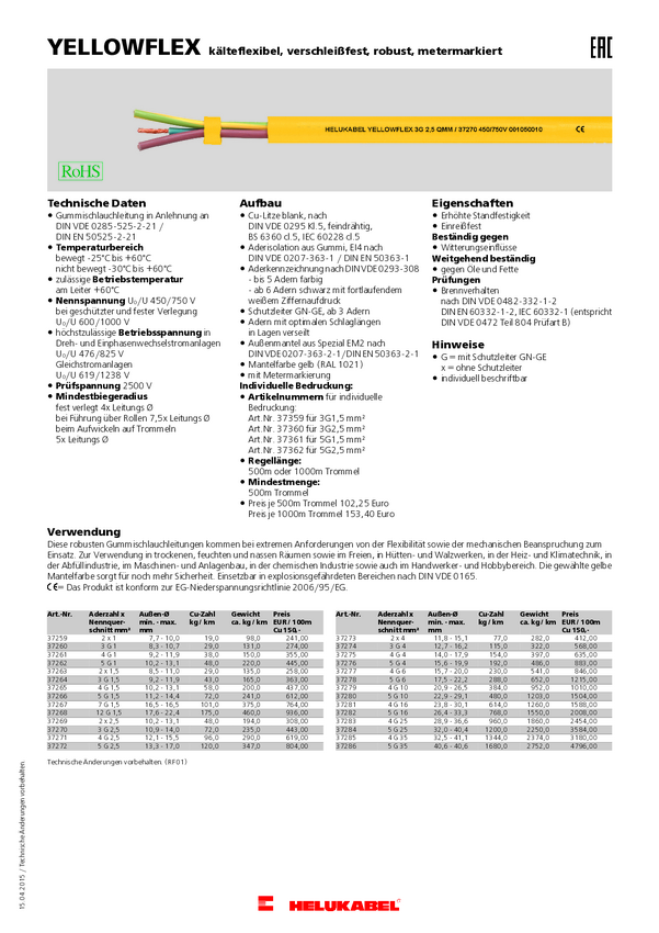 Przewód z gumowym płaszczem Helukabel 37272-500, 5 G 2.5 mm², Przewód pleciony goły, zgodnie z DIN VDE 0295 Kl.5, z cien