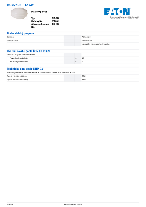Pływak z tworzywa sztucznego Eaton SK-SW 1 szt.