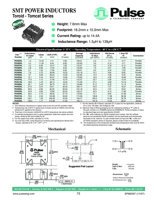 Ind Power Wirewound 18.5uH/74.1uH 20% 5.4A/2.7A Tube