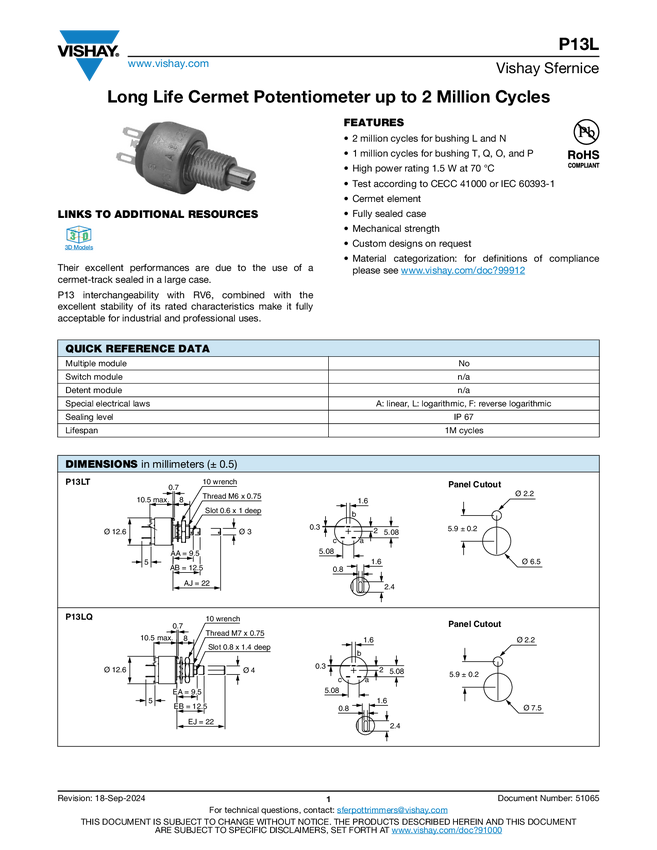 Long Life Cermet Potentiometer up to 2 Million Cycles
