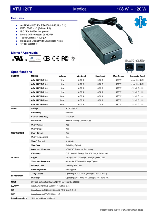 Zasilacz stołowy i wtykowy AC/DC Dehner Elektronik ATS 120A1-P240 ATS 120A1-P240 5.0 A 120 W stabilizacja