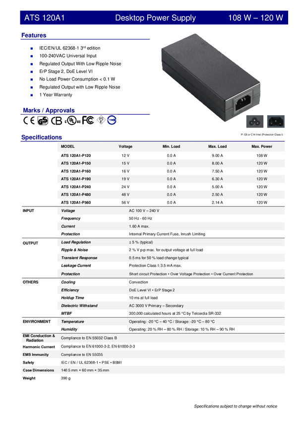 Zasilacz stałonapięciowy Dehner Elektronik ATS 120TS-P240 ATS 120TS-P240 5 A 120 W stabilizacja