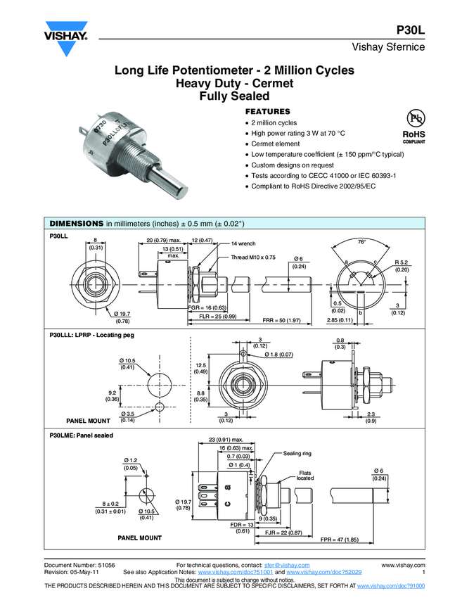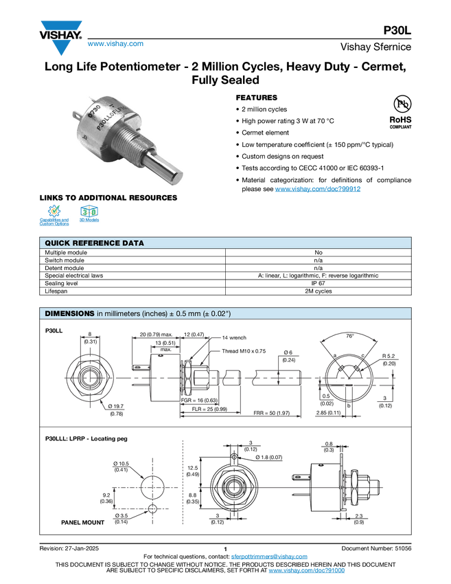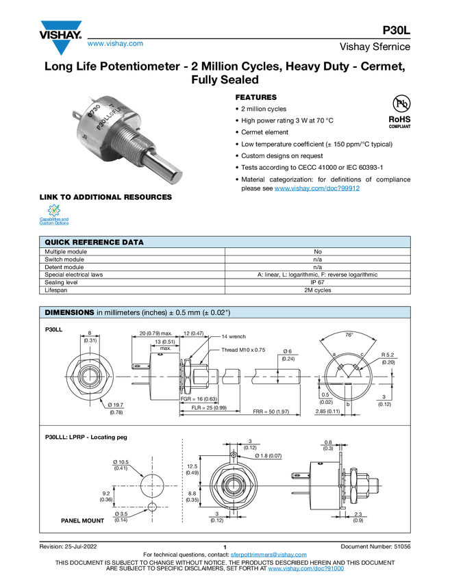 Long Life Potentiometer - 2 Million Cycles, Heavy Duty - Cermet, Fully Sealed