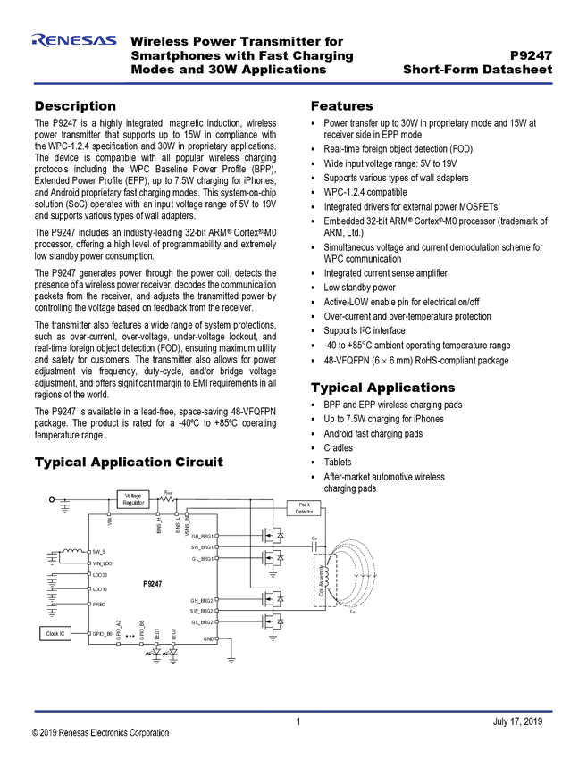 Wireless Power Transmitter for Smartphones with Fast Charging Modes and 15W Applications