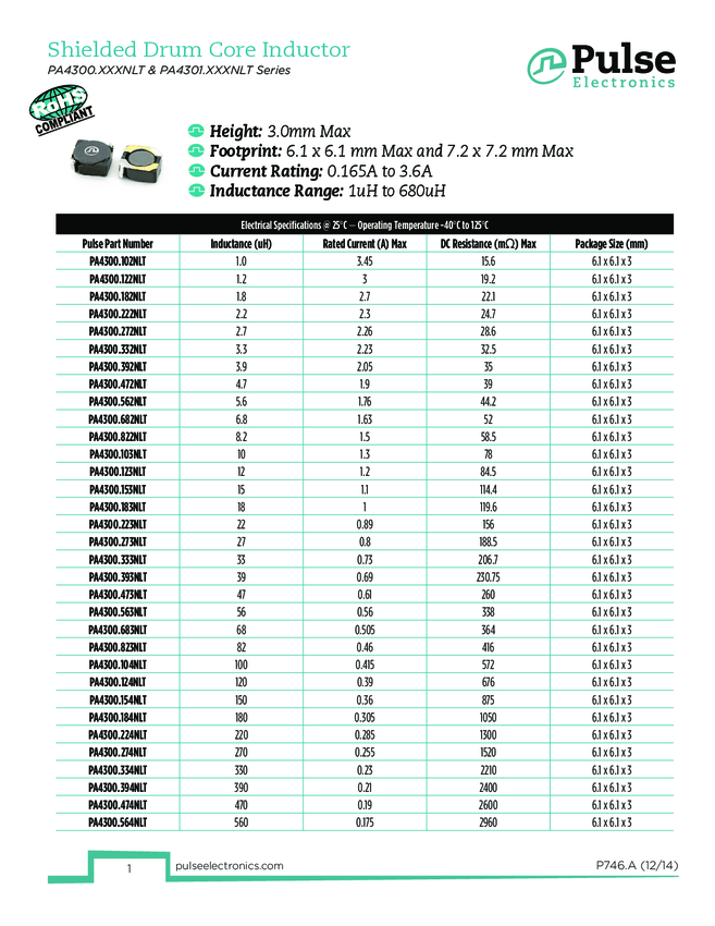Ind Power Shielded 33uH 30% 100KHz 730mA T/R