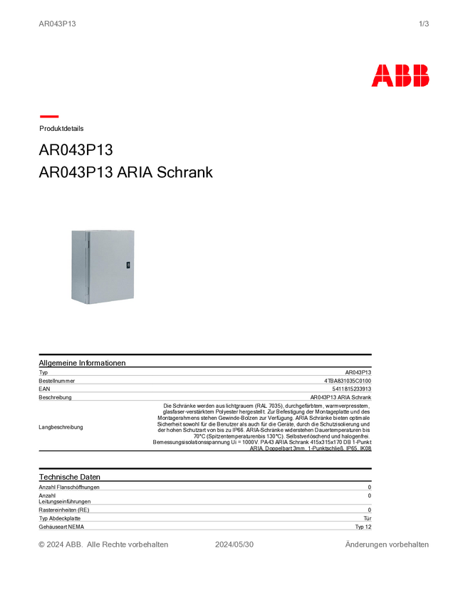 Striebel & John 4TBA831036C0100 PA43D Szafka rozdzielcza nadtynkowy Ilość rzędów = 0 Content 1 szt.