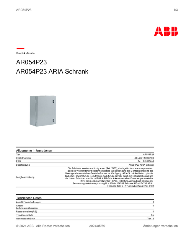 Szafka rozdzielcza Striebel & John PA54Z 4TBA831809C0100, 415 mm x 515 mm x 230 mm, 1 szt.